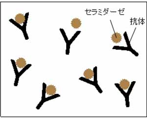 このセラミダーゼに対する抗体を化粧品へ応用化することにより、セラミドの分解を抑制し、皮膚のバリア機能や保湿性を強化、皮膚機能の正常化が図れると考えられます。