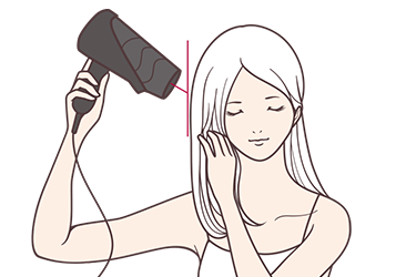 髪やに対して垂直にドライヤーをあててゆっくり動かしてください。速くキレイに乾きます