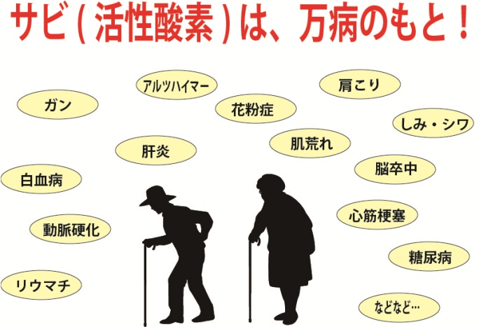 「悪玉としての活性酸素」 が増えると、体内が錆びやすくなって、酸化=老化が進みます。