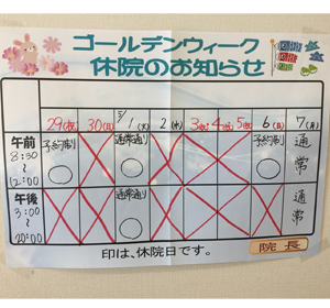 5/1は一日営業しておりますので、早めの予約をお願いします。