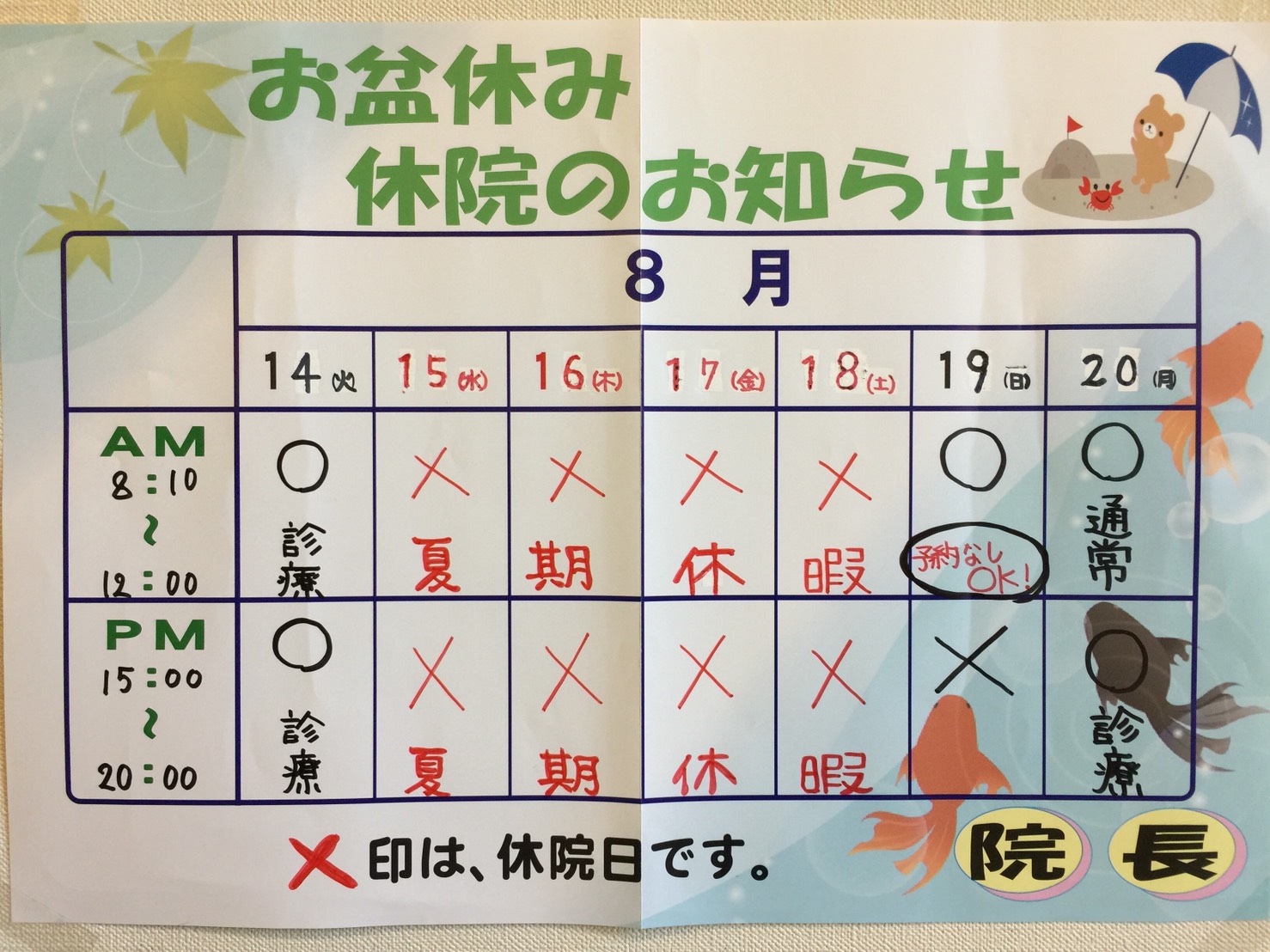 夏期休暇のお知らせ